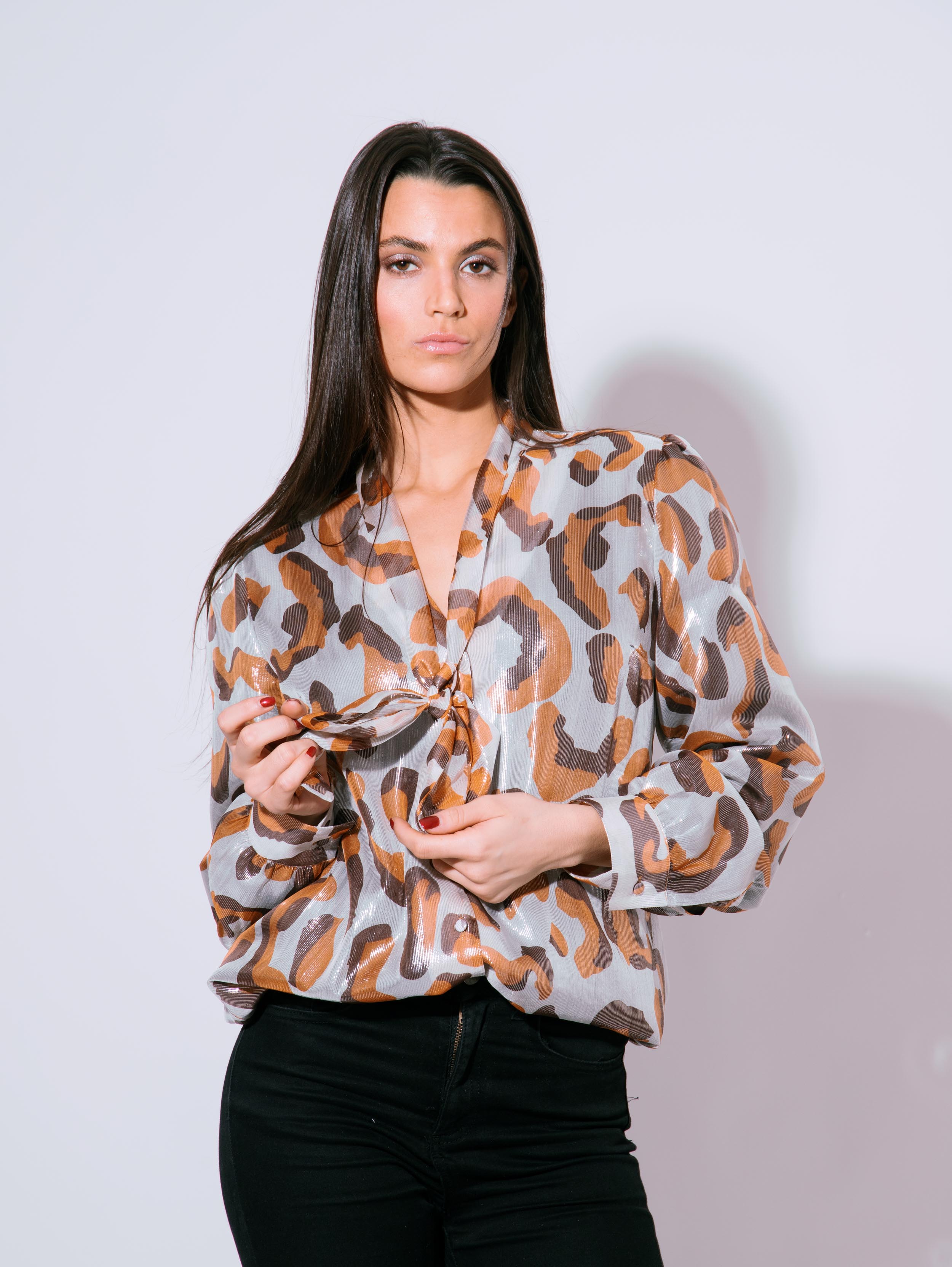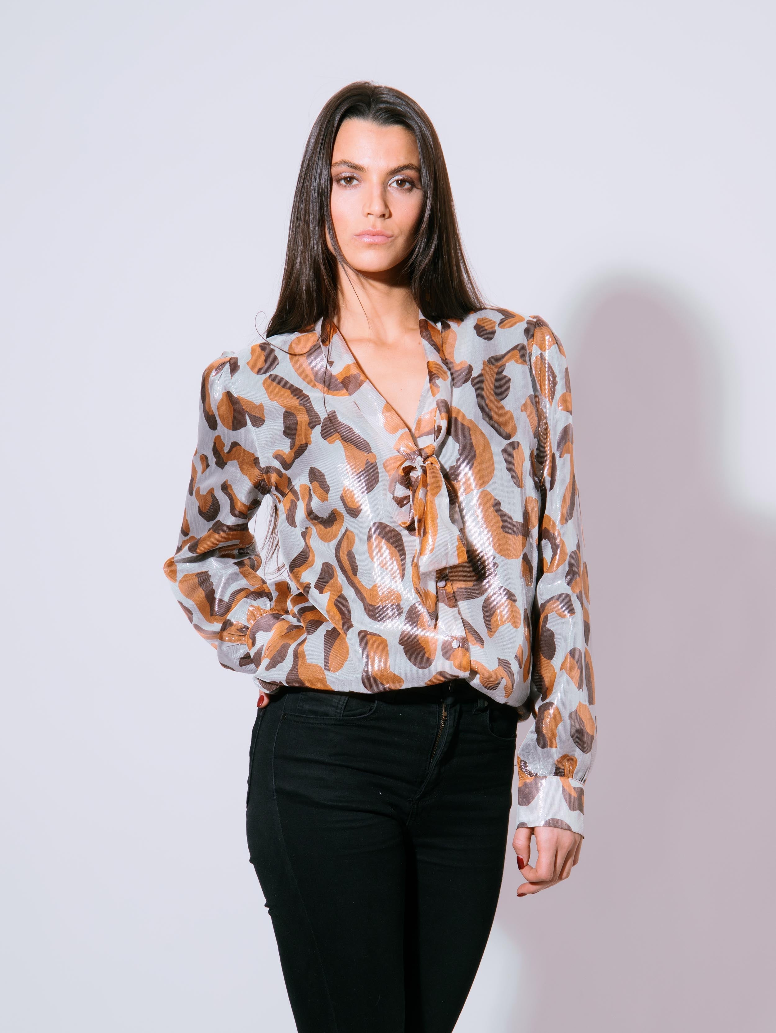The leopard Lavallière shirt is the "effortless" chic piece of the women's wardrobe. A classic revisited in a leopard print, and in a glittery version for the unapologetic rock side. Its numerous details make it a bold, elegant and refined piece. Made in our Parisian workshops.